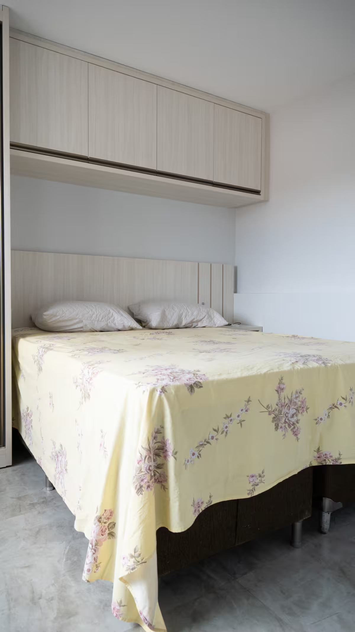 O apartamento tem 1 quarto1, sendo suíte, cozinha completa e 1 lavabo.